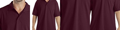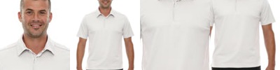100% polyester mlange jersey, 4.1 oz./yd2/140 gsm; Moisture wicking and antimicrobial performance; self-fabric collar with collar stand; self-fabric piping at front and back shoulders; heat seal label;