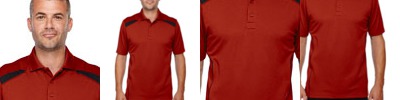 4.1 oz., 100% polyester; Dri-Power® moisture-wicking fabric; Self-fabric collar with contrast back neck tape; Two-needle hem bottom; Contrast inserts on shoulder and sleeves; Dri-Power® oval lower right front; "R" Russell logo outside back neck;