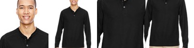 5.9 oz., 100% poly waffle; moisture-wicking; anti-microbial performance ; matching rib neck trim; heat-sealed label ; metal buttons at placket;