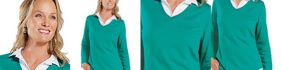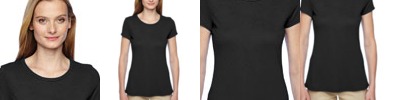 - wicks moisture away; missy fit with feminine neckline, sleeves, and fit