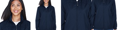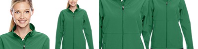 bonded with 100% polyester microfleece, 7.4 oz./yd2/; 100% polyester mélange jersey; inside storm placket with chin guard; contrast center front reverse coil zipper ; stretch storm cuffs with thumb holes; chest pocket with contrast invisible zipper; lower pockets with contrast reverse coil zippers; contrast coverstitch details; audio port access through inside left pocket; adjustable shockcord at hem;