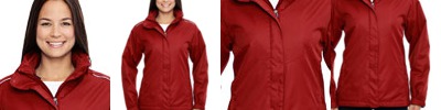 Water resistant finish; 100% polyester microfiber twill printed plaid, 4.4 oz./yd2/150gsm; LINING: 100% polyester taffeta with embossed print; stylized storm flap with metal snaps at top and bottom; inside facing pocket with welt; inside security pocket with invisible zipper and audioport; adjustable cuffs with tabs; dual lower pockets with metal snaps and invisible zippe; adjustable hem with tabs and metal snaps;