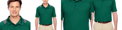 5.3 oz., 91% polyester, 9% spandex body ; 4.7 oz., 91% polyester, 9% spandex pointelle mesh back panel; moisture-wicking and anti-microbial; cationic dyes to ensure superior brightness and excellent color fastness; athletic fit; self-fabric collar; self fabric Sport Graphite inner neck tape; three-button placket; self-fabric Sport Graphite inserts at shoulders;