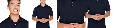 3.5 oz., 53% cotton, 43% polyester, 4% lycra; Fine yarn count shirting; True Non-iron performance straight from the dryer; stain release finish; Active Fit; Patented pucker-free taped seams; Fused collar, cuffs, and placket; Split back seam with bias cut back yoke; Straight collar with built-in collar stays; adjustable Comfort Collar for up to an inch of stretch at neck; left-chest pocket; pearlized buttons;