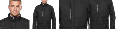 8,000 mm waterproofness/800 g breathability; 100% polyester two-tone texture; Bonded with birdseye mesh, 8.8 oz./yd2/300 gsm; soft touch rib inner collar and storm cuffs with adjustable tabs; centre front zipper with metal zipper pulls; square metal rivet details on front and back armhole; pocket flaps with side entry zippered pockets; audio port access through inside left pocket;