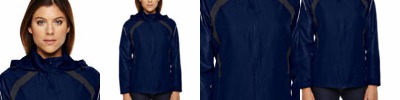 SHELL: 100% 240T polyester pongee, 2.3 oz./yd2/78 gsm; INSERTS: 100% 240T polyester pongee; Inside storm placket with chin guard; Roll-away hood; front reversed coil zipper with semi-auto lock rubber pull tab; Contrast color and tonal embossed print inserts; Reflective piping at upper sleeves; Two lower front concealed zippered pockets; Adjustable shock cord at hood ; Adjustable cuffs with tabs; Audio port access through inside lower left pocket; Companion styles;