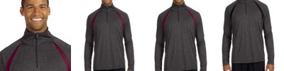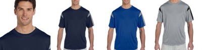 100% polyester snag protection tricot, 4 oz./yd2/135 gsm; Moisture wicking, antimicrobial and UV protection performance; Matching flat knit collar; Contrast side inserts, cover stitch and piping;