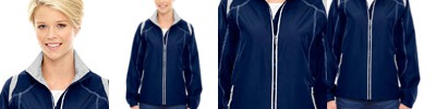 100% polyester 240T pongee, 2.3 oz./yd2/78 gsm; water resistant finish; inside storm placket with chin guard; reflective stripe on center front zipper tape; contrast reverse coil zippered pockets ; reflective stitching on external locker loop at back neck; adjustable cuffs with tabs; drop back hem with adjustable shockcord;